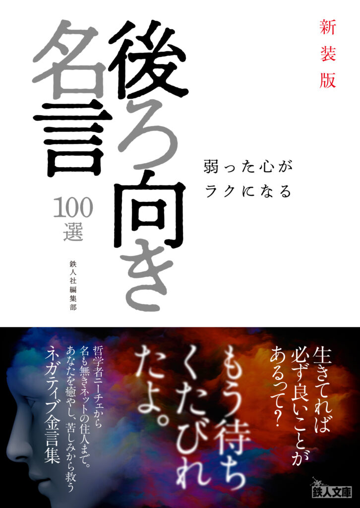【新刊のご案内】2月26日発売『新装版 弱った心がラクになる 後ろ向き名言 100選』 2026.2.16 お知らせ SBN978-4-86537-319-6 C0176 224頁 著:鉄人社編集部 発売:2026年2月26日 定価:880円(本体800円+税) がんばるためではなく、 がんばれない日のための一冊。 完璧を求められる時代に、 あえて“後ろ向き”が心を救う。